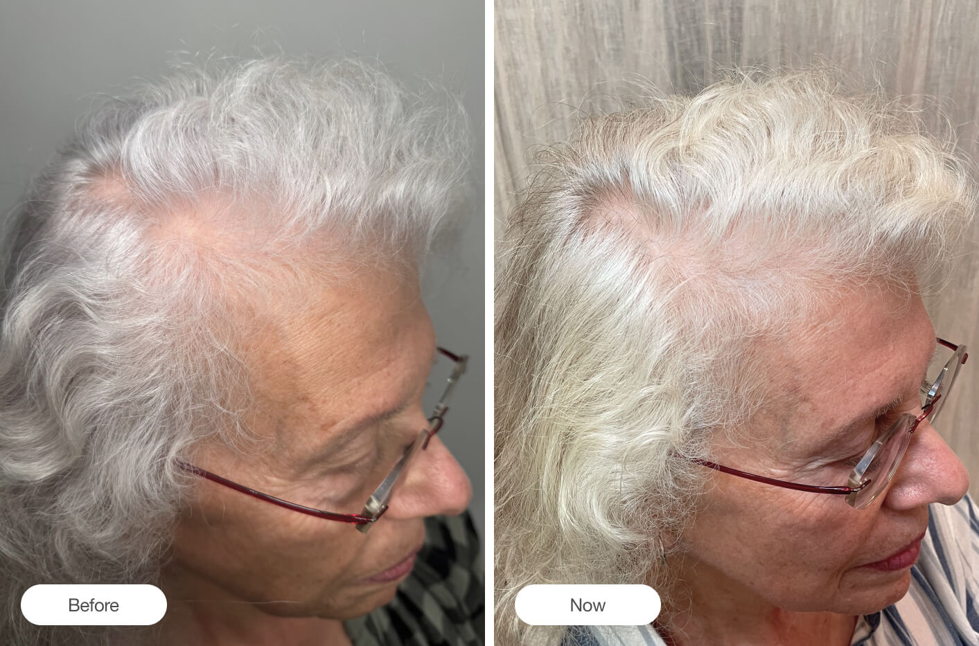 "The Extract is improving her overall hair quality and density. Not only is the pigmentation deeper, but the strands are thicker and growing longer, increasing scalp coverage."